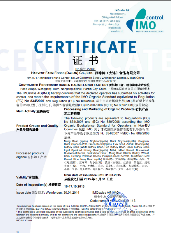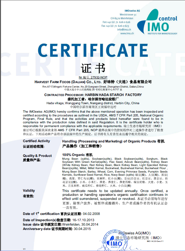 ORGANIC CERTIFICATE (NOP)