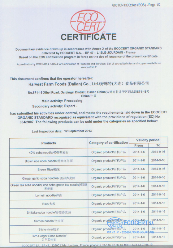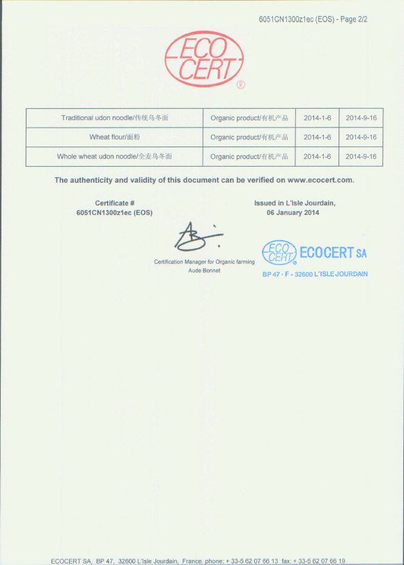 ORGANIC CERTIFICATE NOODLES(EU)