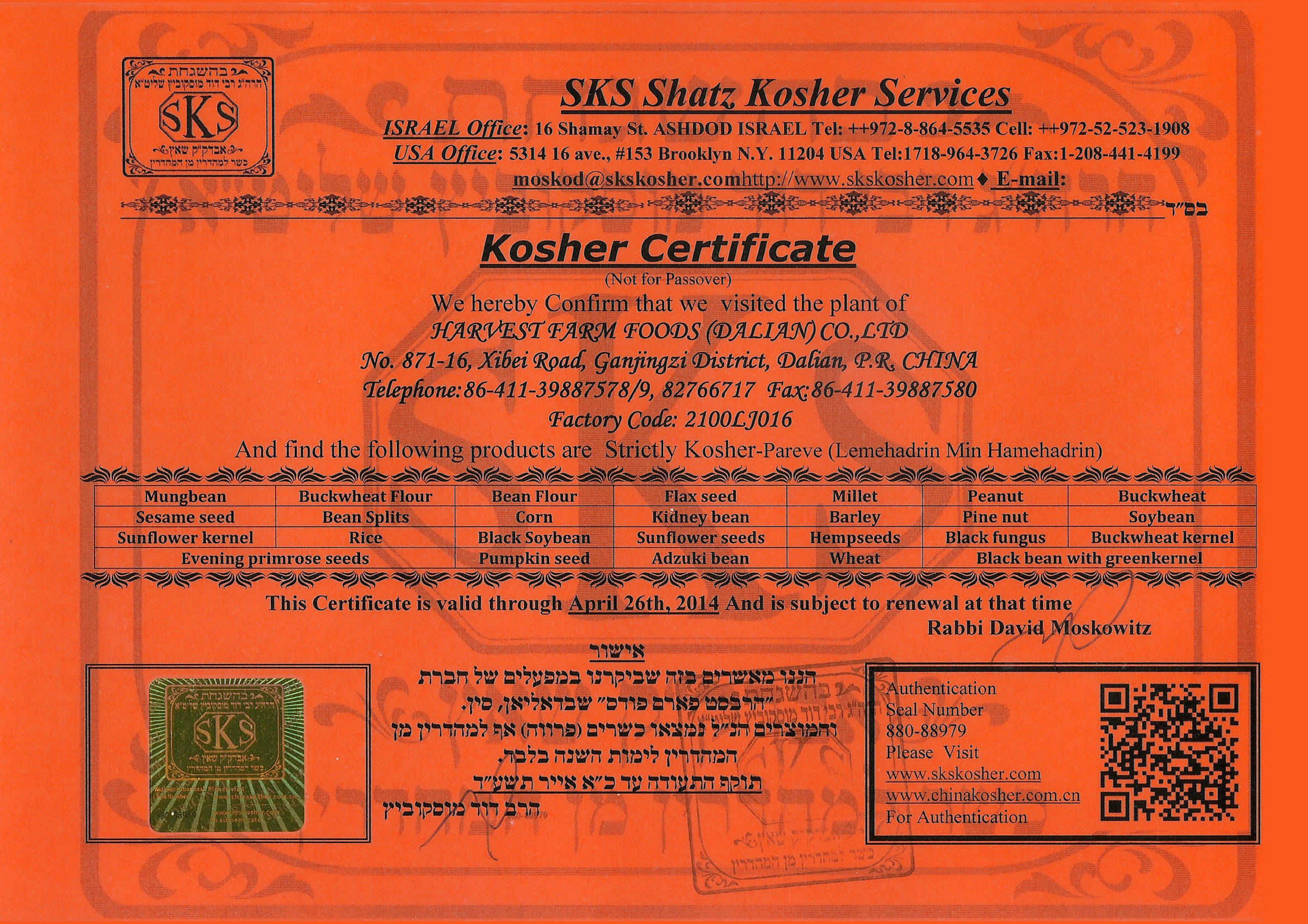 ORGANIC CERTIFICATE NOODLES (NOP)